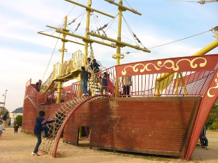 ![]() 2000(平成12)年7月20日(海の日)に、 「呉ポートピアランド」跡地を利用して市民公園として開園した「呉ポートピアパーク」 広くてゆったりとした敷地で、駐車場も広く身障者用駐車スペースも設けられています。 この日はちょうどフリーマーケットが開催されていて、そこそこにぎわっていました。 イベント情報は、呉ポートピアパークのホームページに載っているので、必見です。 ![]() 遊具もあって、子どもが遊べるところがいっぱいあります。 夏には、じゃぶじゃぶ池という水遊びが大・大・大人気。 ![]() こども館という施設もあり、1階は「絵本館」で絵本いっぱい、2階には「なんでも広場」で マットが敷かれた小さい子が遊べるスペースがあるらしい。 あやふやな言い方をする理由は、この施設はエレベーターがないので、車いすを使用する私は 2階に上がったことがないからです。 主人が2階で娘を遊ばせてる間に、私は1階でのんびり絵本や漫画を満喫してます。 エアコン完備で、とても過ごしやすいので、ついつい長居しちゃいます。 ![]() 外遊びで身体を動かし、室内でのんびり遊べて、私のお気に入りの場所です。 飲食店もあり、陶芸館や木製玩具のお店もあって、家族に合わせたいろんな遊び方ができます。 |