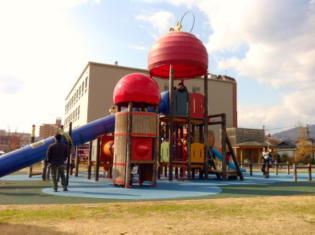 廿日市市新宮にある新宮中央公園(しんぐうちゅうおうこうえん)。 近隣にはあいプラザや廿日市市役所があり、平成17年4月に開園した比較的新しい公園です。 ![]() 廿日市は木材の町として栄え、「けん玉」が全国的にも有名です。 そしてこの公園も、そのけん玉がいたるところにデザインされています。 遊歩道には健康遊具が点在し、夏には水遊びも出来る、広くてゆったりした公園です。 ![]() しかしこの公園は、けん玉だけが特徴ではありません。 この新宮中央公園は、地震などの大規模な災害時に避難場所になるとともに、 いろいろな防災機能を備えた公園なのです。 災害時用の備蓄倉庫や防火貯水槽があり、ベンチが担架や荷物運搬できたり、 炊き出しができるように流し台やコンセントが収納されているんです。 普段は楽しく遊べる憩いの場で、災害時には防災拠点として大切な役割をもつだなんて、素晴らしい公園ですね。 |