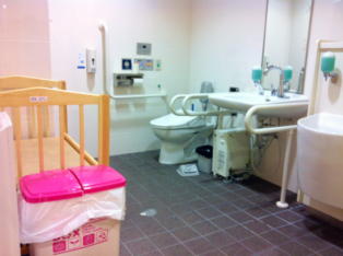 2011年11月にオープンしたMEGAドン・キホーテ宇品店。広島では祇園・福山に続き、3店舗目となる宇品店。 ドン・キホーテは、たまに行くとやっぱり楽しいな♪ 駐車場には身障者用とは別に、高齢者専用駐車場がありました。 ![]() 多目的トイレでは、気になる点がひとつ。 ![]() 写真ではわかりづらいかもしれませんが、子ども用オムツ替えベットのおかげもあり、 便器へのアプローチ空間が狭くなっていました。 実際私以外の車いすユーザーも、ここのトイレを見た瞬間、苦い顔をしながら使用を諦めてました。 なんだか残念でした。 ![]() 店内はコーナーによって、通路の幅が違います。私はほとんどの通路は何とか通れました。 安くて品揃えが豊富で、ゆっくりいろいろ見たい時に利用したいお店です。 |