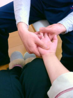 訪問リハビリテーションは、心身の機能を維持・回復させ日常生活の自立をたすけるために、 理学療法士や作業療法士などがサービス利用者の家庭を訪問し、リハビリテーションを行うサービスです。 医療保険または介護保険によって受けることができます。 病院や施設での訓練とは違って、一人ひとりの必要に合わせて、より日常生活に密着したプログラムが可能です。 手続きについては訪問看護と同じで、かかりつけ医の「指示書」が必要です。 私の場合は、訪問看護をはじめた後、足首の拘縮(こうしゅく:関節可動域が制限されること)が気になり、 看護師さんに相談したところ、訪問リハビリのことを教えていただき、お願いすることにしました。 現在、理学療法士の方に週1回1時間来ていただき、体の機能維持と、日常生活動作(ADL)を 少しでも改善することを目的に、リハビリを行ったり、日常生活での指導をしていただいてます。 自助具を初めとし、車いす生活カテゴリはこの理学療法士さん考案の内容が多いです。 今後もたびたびカテゴリ上に名前があがると思うので、ミッチー先生と愛称つけておきます。 ミッチー先生のおかげで、できることが増えて、生活しやすくなりました。 ありがとう、ミッチー!感謝してます。 |