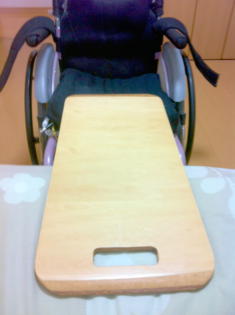 トランスボードは車いすからベットに移乗する時に使うものです。