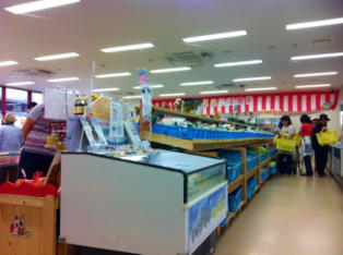 交流館には、地元の特産品が販売され、食事ができるところもあります。