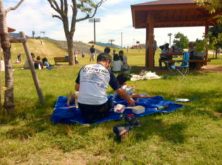 まずはお弁当を持ち込んで、ピクニック気分!青空の下、気持ちよくいただきました。