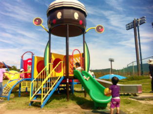 しかし、お弁当もそこそこに娘の興味は、「こども広場」の大型すべり台へ!!!