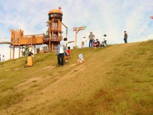 遊具も楽しいのですが、とくに子ども達に人気だったのは、芝すべりです。