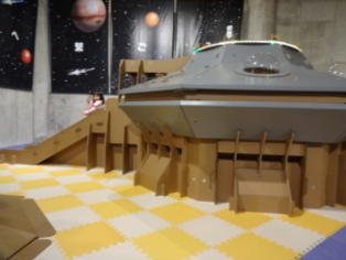 その他、私たちが訪れた時には、段ボールで作られたアート作品が展示されていました。