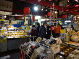 山口県萩市の活気ある「道の駅」。市場があり、新鮮なお魚がいっぱいです。